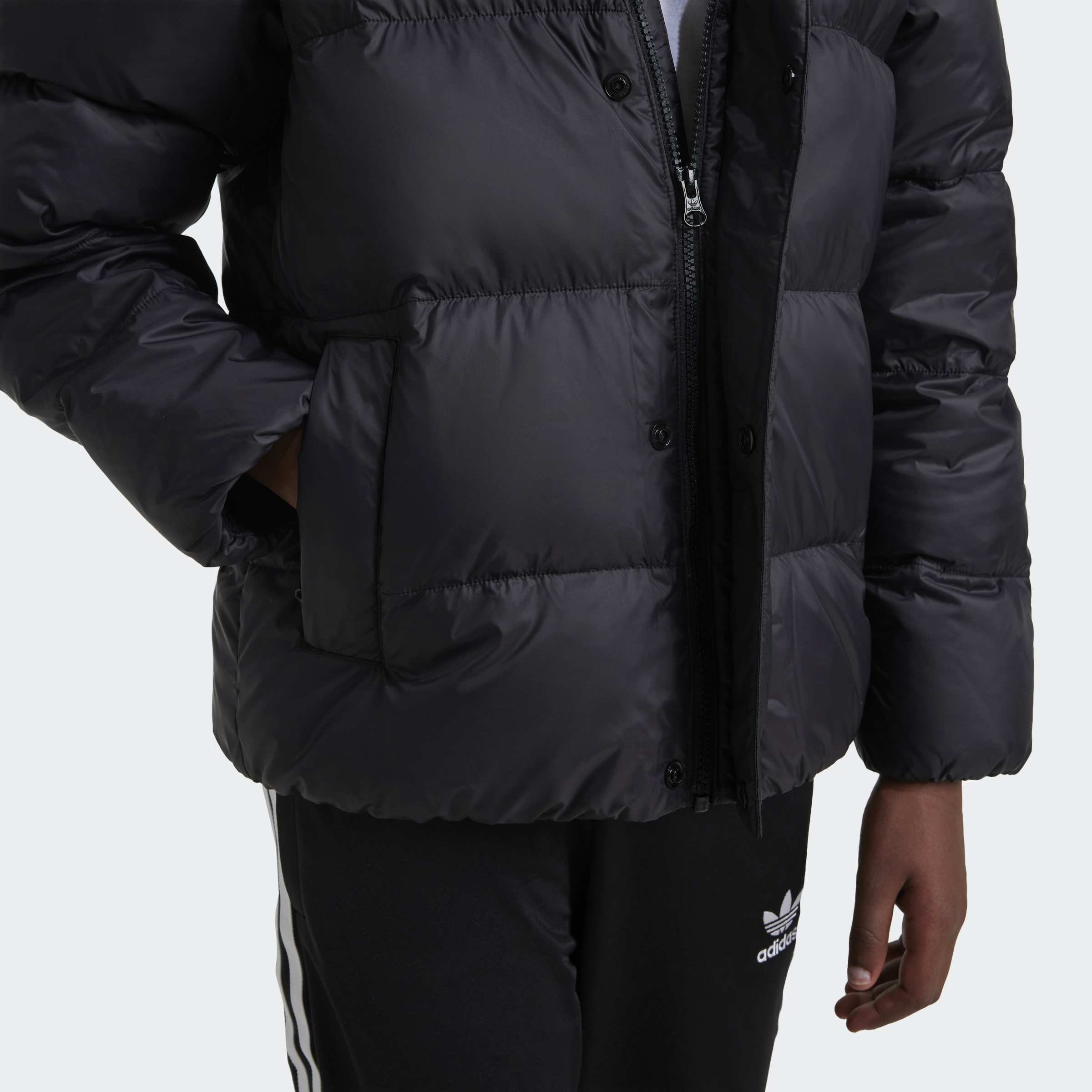 Nothing quite compares to the cosiness of down. With a detachable hood and soft pocket lining, this Adicolor Down Jacket is all about keeping you cosy when the temperature drops. An embroidered Trefoil logo on the chest stands out on the minimalist silhouette and gives a subtle nod to the brand's storied heritage. The loose fit and full zip with stand-up collar keep the look modern.