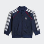Some pieces never go out of style. This infants' adidas track suit reimagines a wardrobe staple for a new generation. The embroidered Trefoil and 3-Stripes down the sleeves and legs connect them to decades of athletes and game changers. In smooth tricot teams up with a loose, everyday fit, this look is poised to become their go-to for casual hangouts and adventures. When heritage-inspired style is this comfortable, the only thing left is for them to make their own iconic moments.This product is made with 100% recycled materials. By reusing materials that have already been created, we help to reduce waste and our reliance on finite resources and reduce the footprint of the products we make.